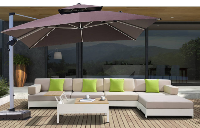• 3.5 米直径的罗马伞则适用于大型的户外空间,如大型庭院、泳池边或者商业场所的户外休息区。它可以覆盖更广阔的区域,能够同时为多个座位或者躺椅提供遮阳,比如可以同时为 6 - 8 人甚至更多人提供舒适的遮阳环境,营造出宽敞的户外休闲氛围。